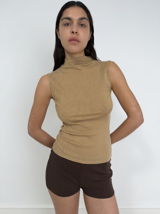 Sleeveless Mock Neck Top, Camel